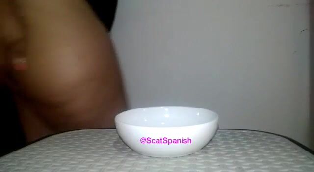 Shaved girl shitting on a plate