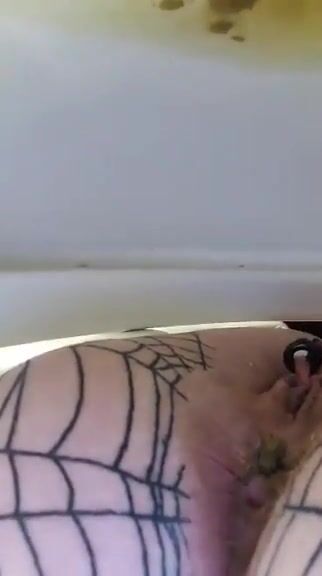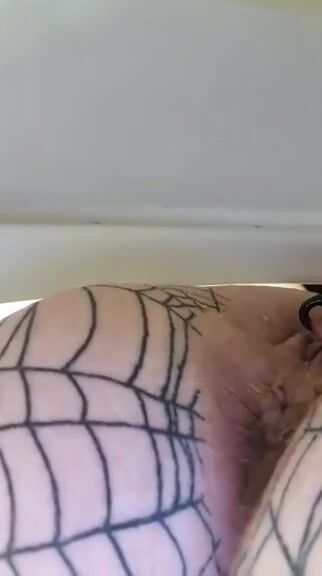 Fetishista with fishnet stockings squatting and shitting in her ass crack