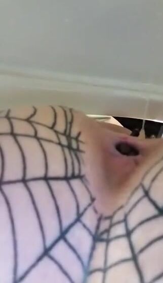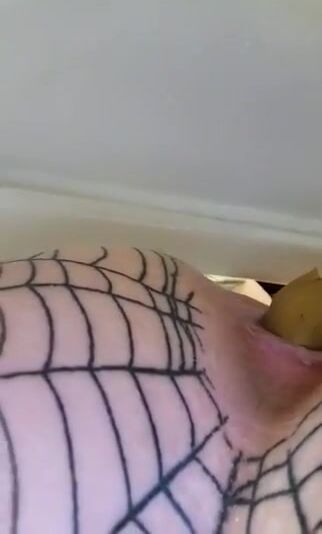 Woman in a fishnet stocking lets a cock fuck her ass in a bathtub