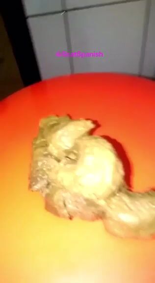 Smearing green shit on shaved pussy