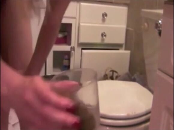 Skinny blonde girl shitting heavily in the glass