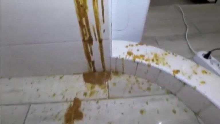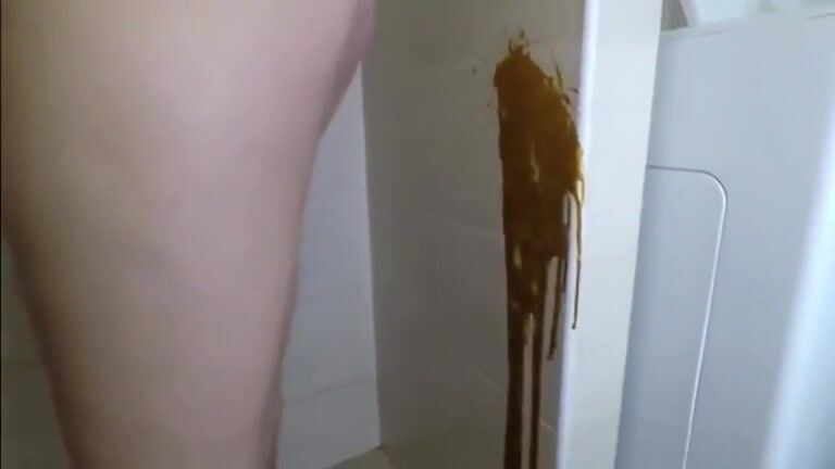 Spraying the wall with her messy shit