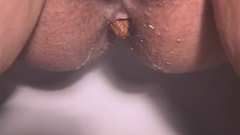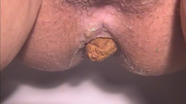 Dry poop from mature ass