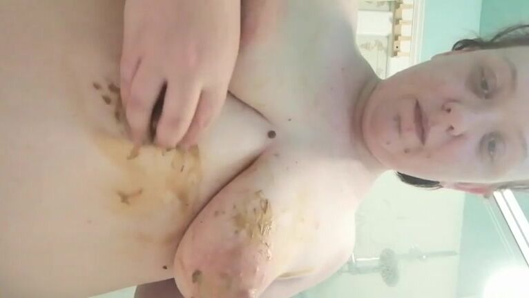 Massive big boobs chubby lady eating shit