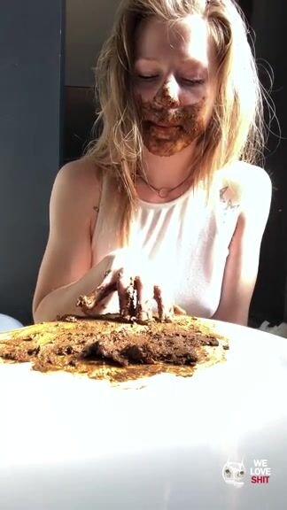 Mature blonde eating shit from the plate