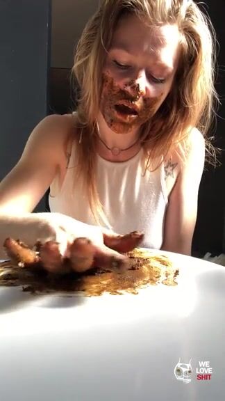 Redhead teen swallows poop