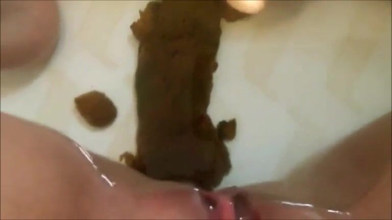 Beautiful brunette pooping