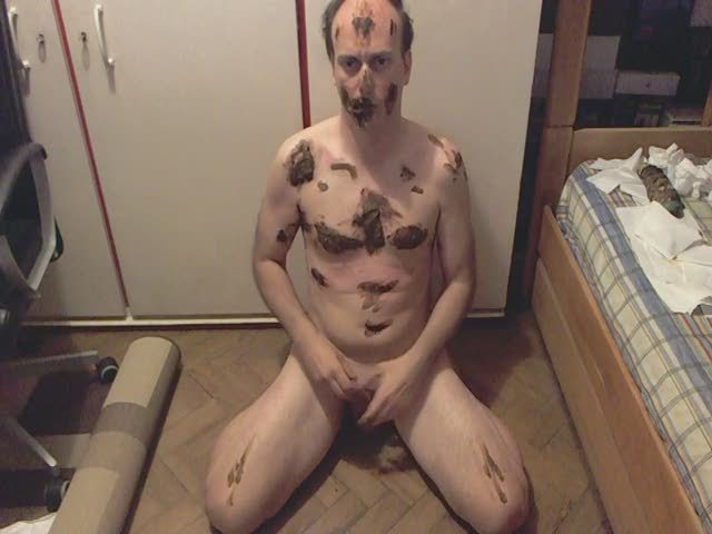 Amateur guy masturbating with mouth full of shit