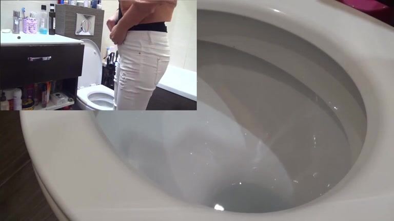 Brunette Model shitting on the bathroom floor