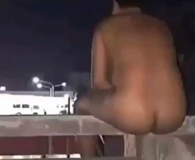 Naked babe on the balcony