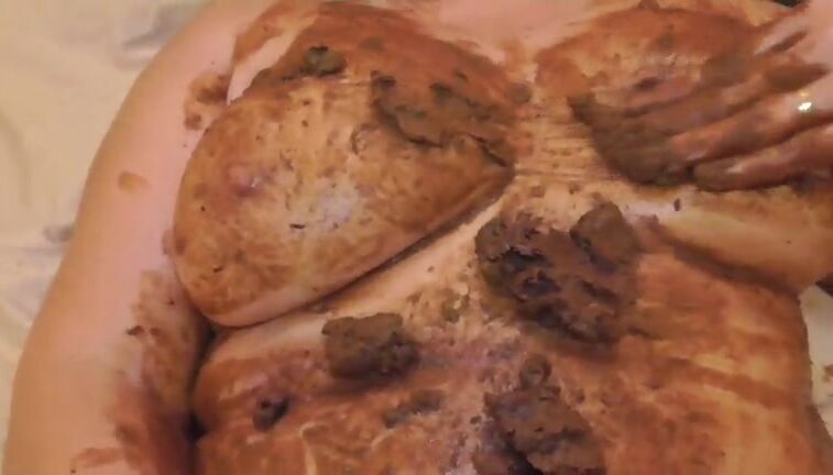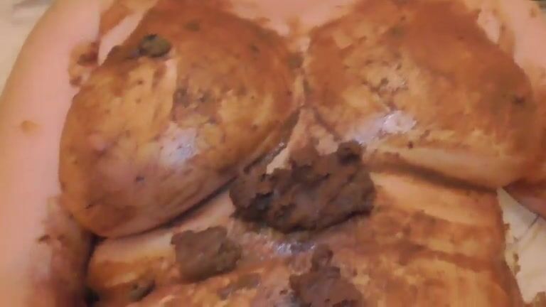 Mature lady smearing shit on her tits and pussy