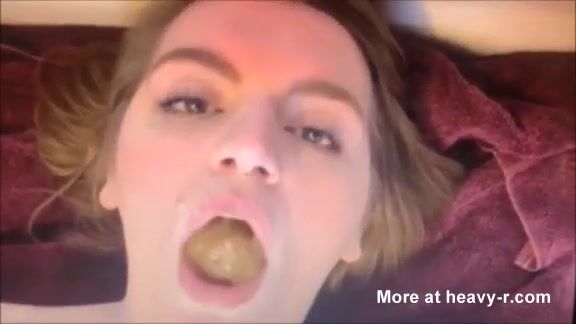 Seductive brunette girl eating shit