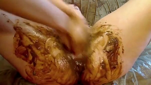 Girl fills her vagina with her own shit.