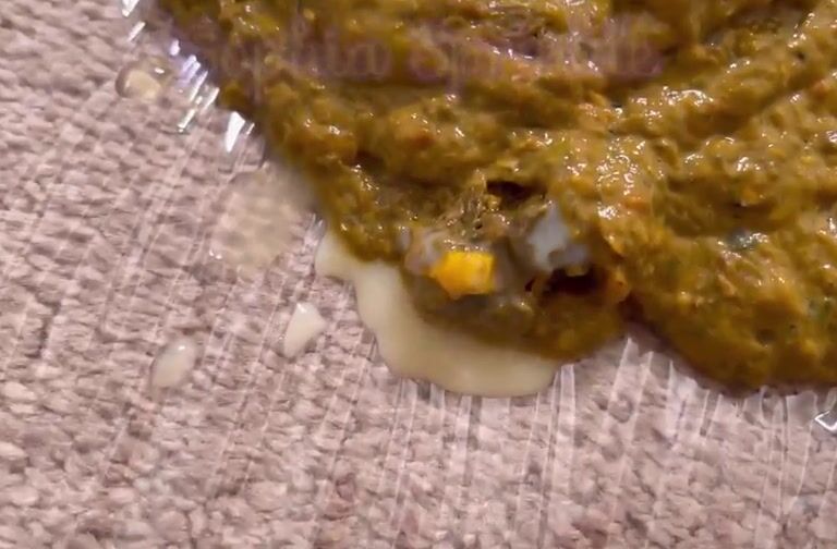 Girl shit and piss on white panty in the bathtub