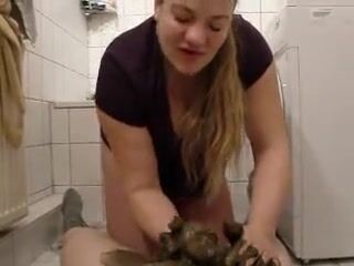 Smearing shit on her pussy