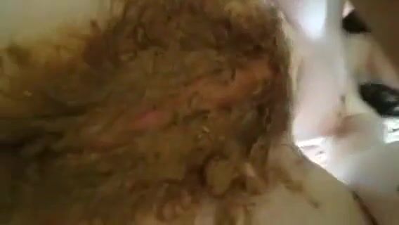 Australian babe rubbing her hairy pussy with shit