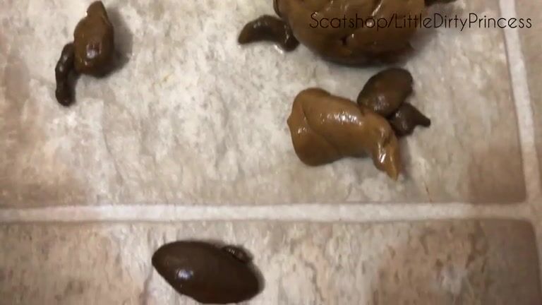 «This dark haired girl, probably about 18 - 22, is enjoying herself as she performs her first poop, - she grins as she does it,- while totally naked, (very nice breasts and bum), and it is not pebbles at all, but a good sexy, bulky poo. She sits on the loo after to pee, and it is good to note that she has an attractive fuzz of hair over her pubis/genitals. She uses much paper to wipe herself. and shows us the stains, and then very proud of her poo, the camera spending much time on the excrement. Then, for her second poo, she is wearing jeans and tee-shirt, removes the jeans, drops some indeed poo pebbles on the floor, returns to loo to pee and then back to the floor, where she passes another sexy bulky poo; she sits, with her attractive features and intimates exposed, and then the camera passes over her combined collection of excrement, each of which she collects in paper, shows to camera, before dumping in the loo., and she squatting sexily, naked below waist. And so ends the video, and again one wonders as to how a nice, attractive young woman, can perform so intimately for all the world,actions that, for most, are highly private and personal.»