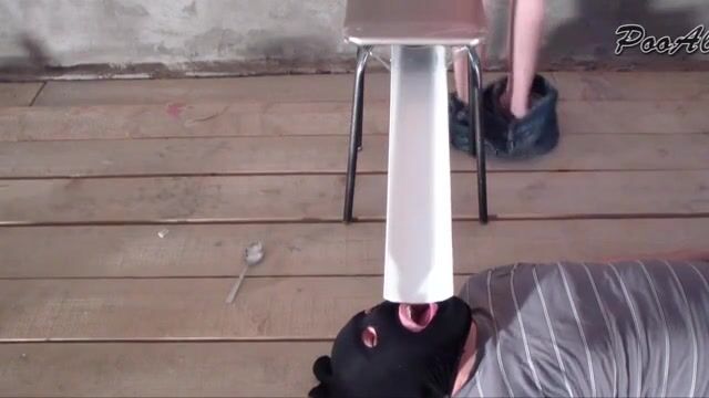 Kinky brunette girl dropping shit for slave