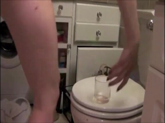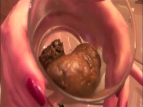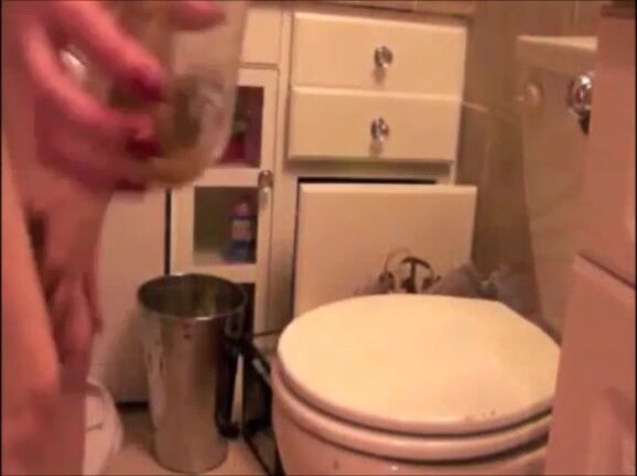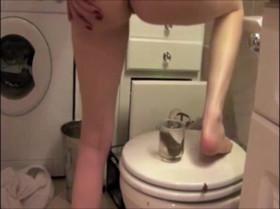 Blonde sexy girl shitting in a glass