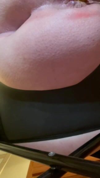 Fingering her cunt while pooping