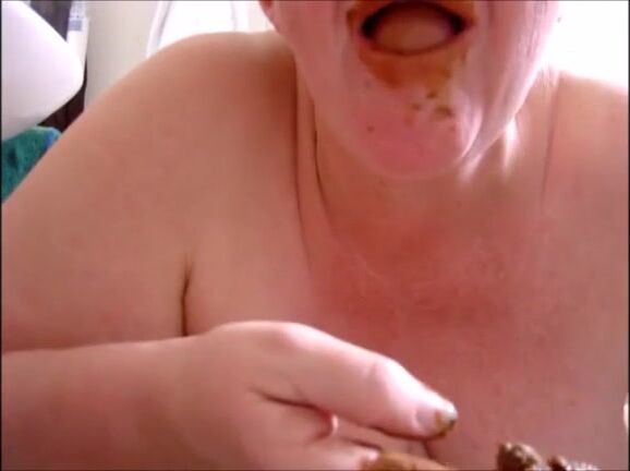 Dirty granny eating her own shit at home