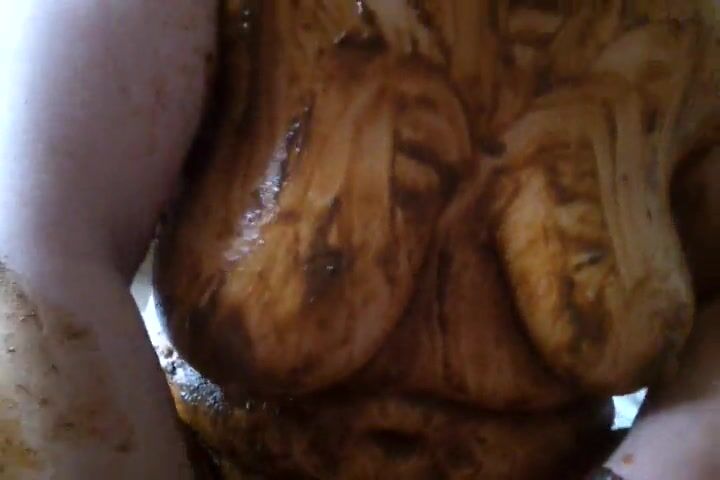 Hairy hot lady smearing and eating shit