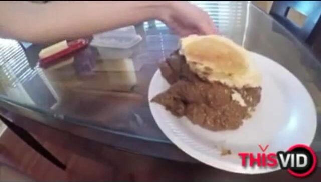 Naked hot chick making poop burger