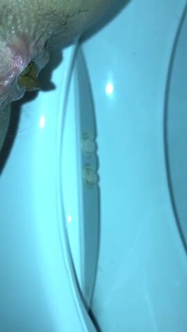 Woman shitting a big diarrhea on her white pantyhose
