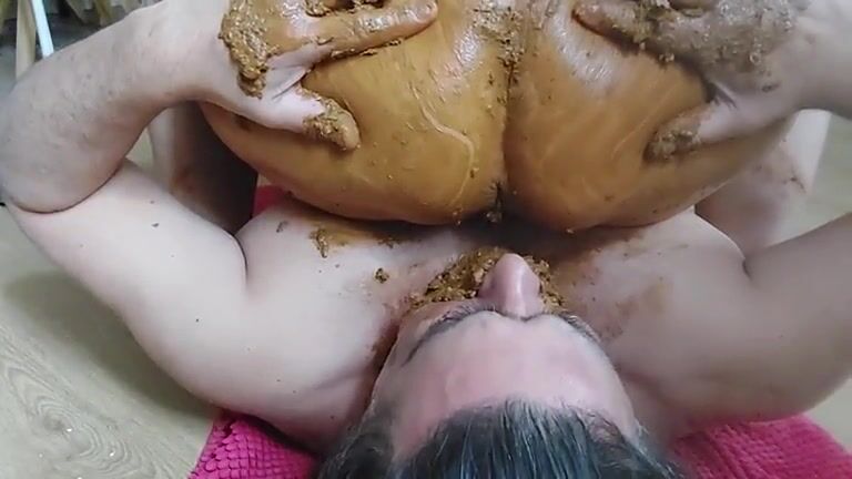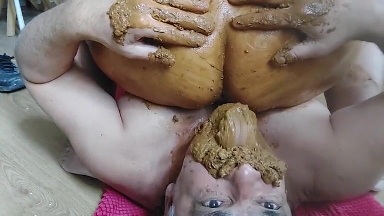 Rubbing shit on chubby ass