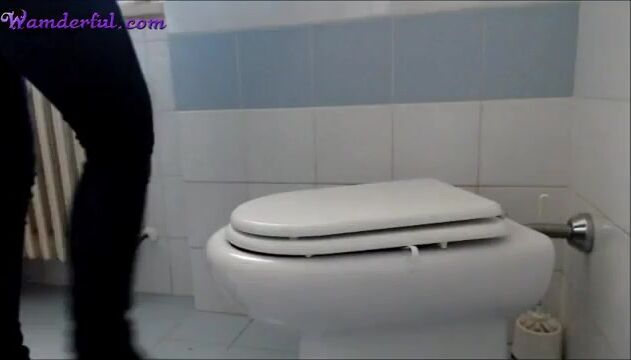 Sexy ebony teen pooping in toilet