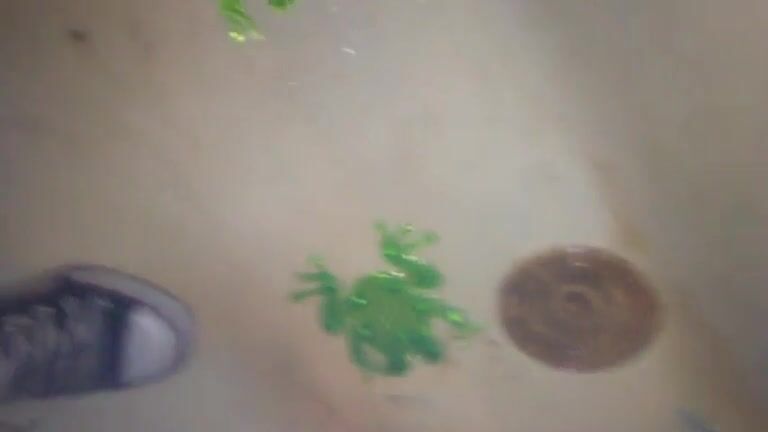 Latina pooping in bathtub