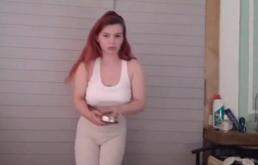 Sweet ginger babe teasing and panty pooping