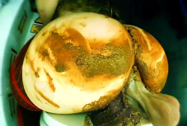 Chubby webgirl eating poop from her dildo
