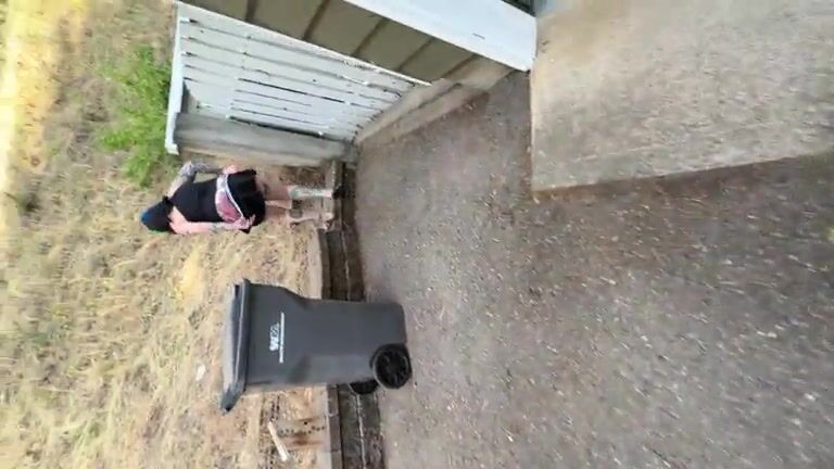 Hot tattooed ass pissing and pooping in the backyard