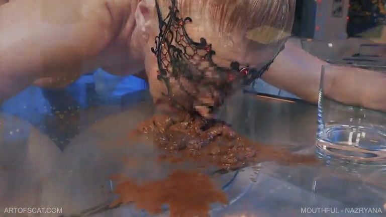 Seductive brunette in fishnet stockings poop smearing solo