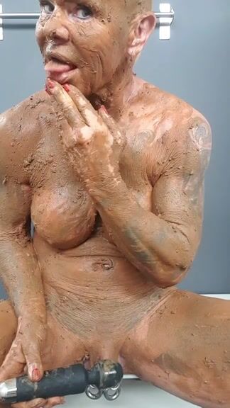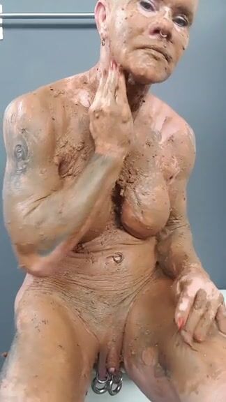 Nasty granny smearing shit