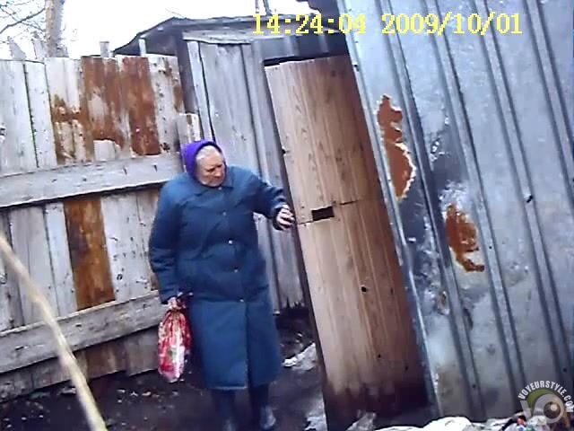 Old Russian granny poops in the backyard