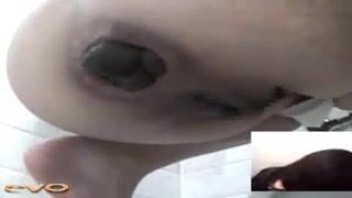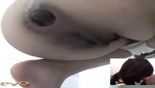 Smooth shaved pussy lady poops POV