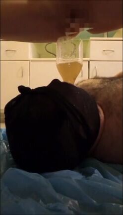 Smearing liquid shit on her pussy