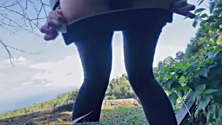 Gorgeous ass lady pooping in the forest