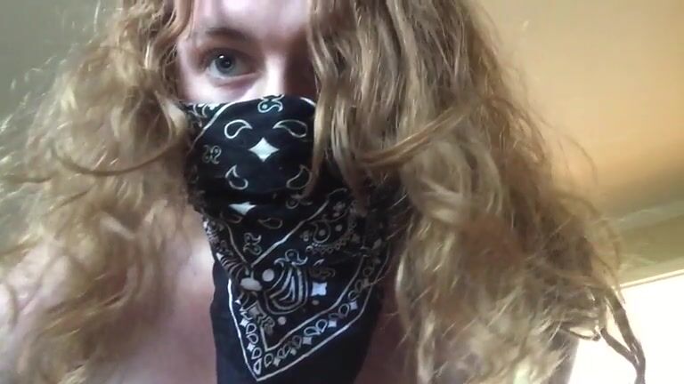 Pretty blonde babe in mask teasing and poop pov