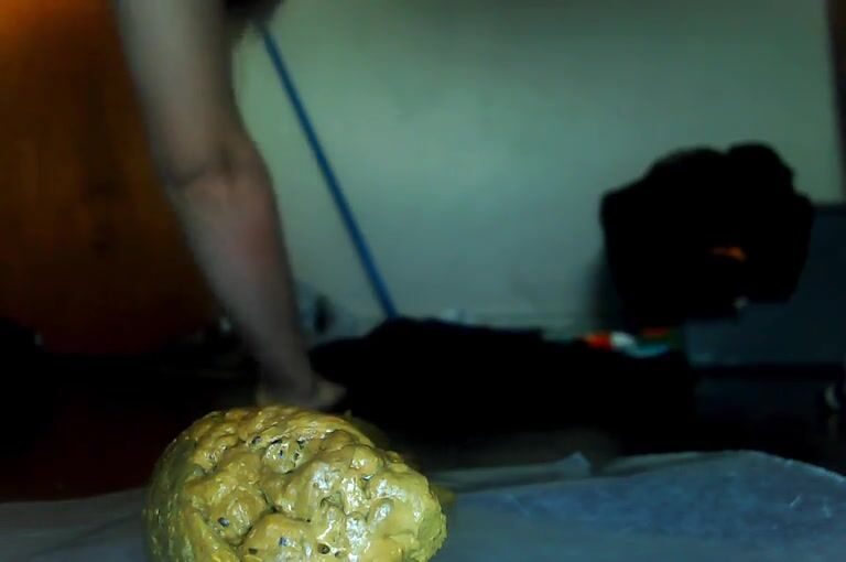 Amateur woman pooping a brown turd on white plate