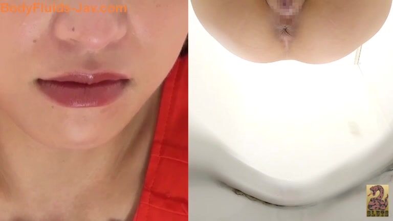 Babe squats down and drops a huge shit into a toilet