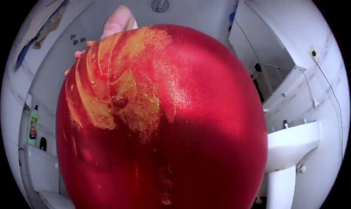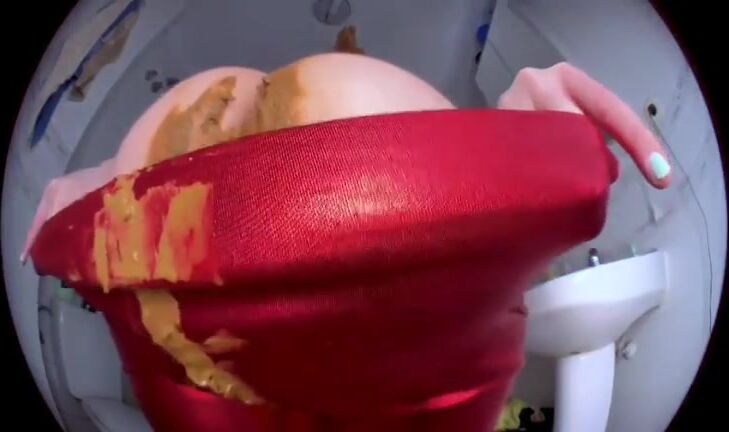 Messy hot shit in tight glossy panty