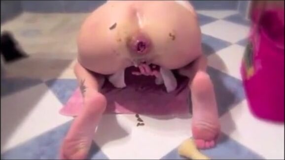 Girl prolapsed asshole plug fart and shit