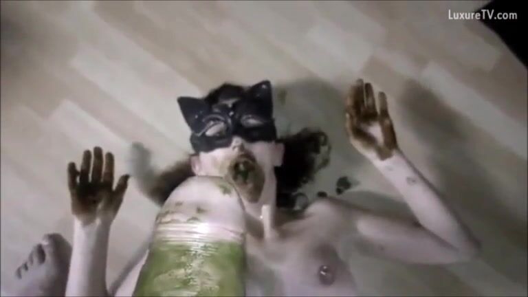 Russian babe smears poop on her face
