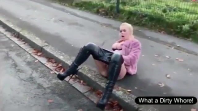 Amazing curvy blonde babe poops on the road