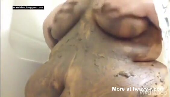 Chubby round ass lady smearing shit