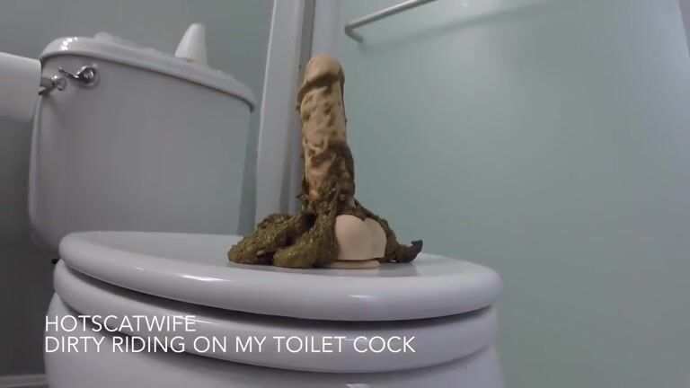 Lady poops and tastes her turdin toilet