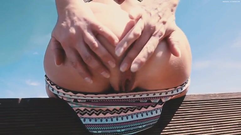 Spreading her thick ass outdoor
